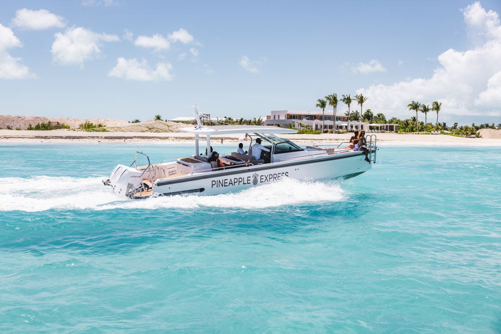 Step aboard one of our magnificent vessels—the Pineapple Express, Caicos Express, or Caicos Explorer—and indulge in the epitome of luxury as you lounge on the sundeck. Your private captain will expertly guide you through the emerald waters of Grace Bay. Whether you choose to spend a half-day, full-day, or sunset snorkel with us, you’ll want to call our vessel home by the end. Departing from the beachfront at The Ritz-Carlton, Turks and Caicos, our state-of-the-art Axopars, helmed by seasoned captains and dedicated crew members, promise an unforgettable adventure tailored to your every desire.