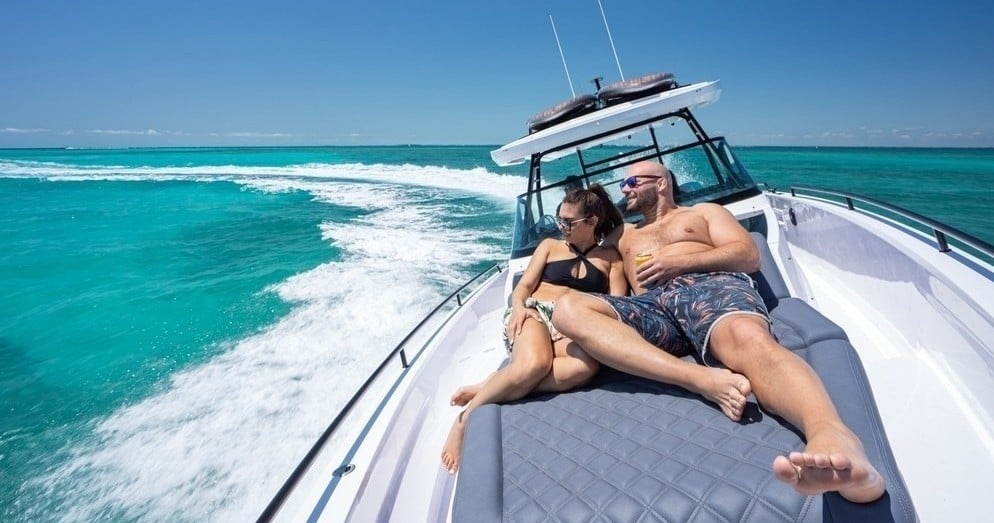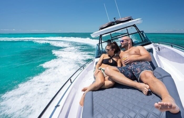 Enjoy the speed, sunbeds, and easy dockage of our 37′ Axopar. Customize a half-day or full-day excursion for up to 10 guests while a knowledgeable captain guides your journey. Relax with a stocked cooler, towels, and snorkel gear.