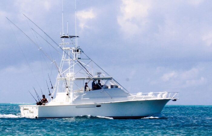 We troll up to 10 lines across a 40-foot spread. An all-weight fighting chair and tuna door assist in hauling aboard a large catch. Did we mention that our retired vessel Gwendolyn holds the Caribbean all-class record for wahoo?